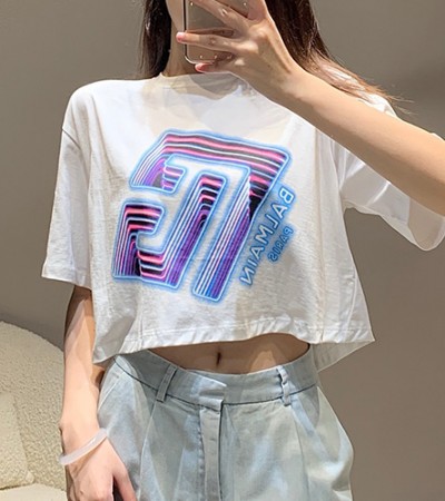• [홍콩명품.BALMAIN] 발망 24SS 로고 여성 그래픽 프린트 쇼트 반팔 티셔츠 (화이트), BM14933, SG, 홍콩명품의류,구매대행,온라인명품