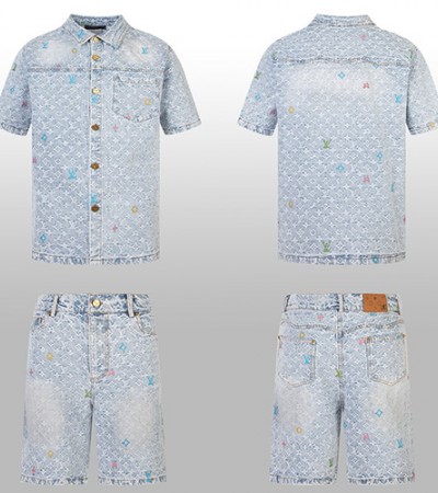 • [홍콩명품.LOUIS VUITTON] 루이비통 24SS 로고 모노그램 빈티지 데님 반팔 남방 셔츠 + 쇼츠 반바지 상하의 세트, BM14953, JU, 홍콩명품의류,구매대행,온라인명품