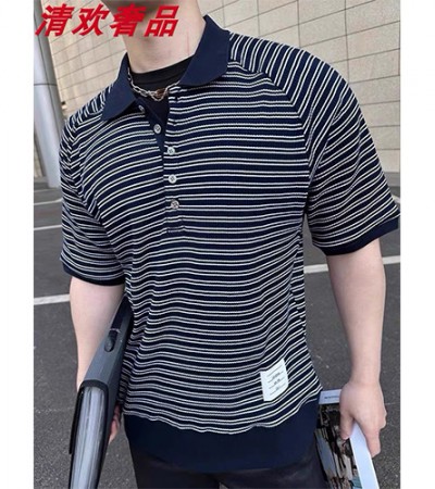 • [홍콩명품.THOME BROWNE] 톰브라운 24SS 로고 스트라이프 카라 폴로 반팔 티셔츠 (네이비), BM14959, RED, 홍콩명품의류,구매대행,온라인명품
