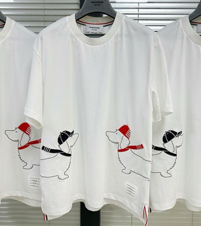 • [홍콩명품.THOME BROWNE] 톰브라운 24SS 로고 헥터 반팔 티셔츠 (화이트), BM14964, RED, 홍콩명품의류,구매대행,온라인명품