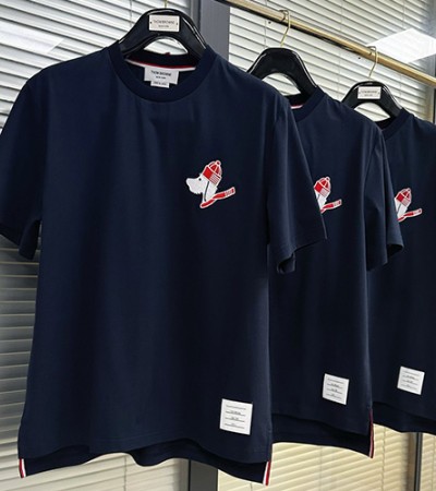 • [홍콩명품.THOME BROWNE] 톰브라운 24SS 로고 헥터 반팔 티셔츠 (네이비), BM14965, RED, 홍콩명품의류,구매대행,온라인명품