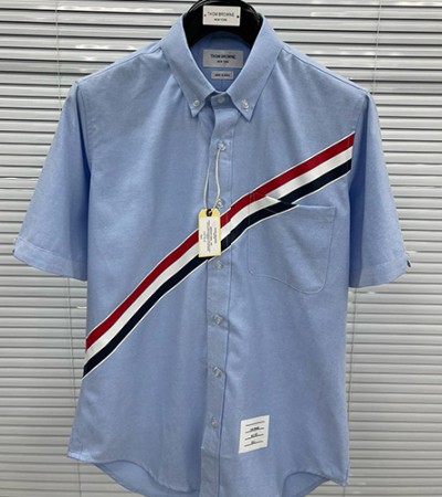 • [홍콩명품.THOME BROWNE] 톰브라운 24SS 로고 3선 반팔 남방 셔츠 (2컬러), BM14852, TB1, 홍콩명품의류,구매대행,온라인명품