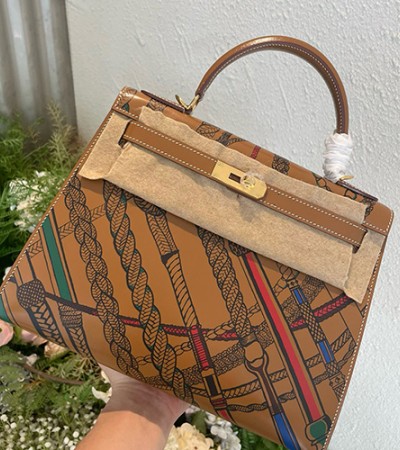 • [홍콩명품.Hermes] 에르메스 24SS 로고 패턴 KELLY 28 레더 가죽 핸드백 토트백 (브라운-금장), BGM3439, H3, 홍콩명품가방,명품쇼핑몰,크로스백,핸드백,구매대행,무브타임
