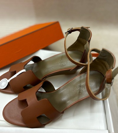 • [홍콩명품.Hermes] 에르메스 24SS 로고 여성 레더 가죽 굽 슬리퍼 샌들 (브라운), SE3723, H3, 명품스니커즈,운동화,구두,로퍼,하이탑,신발