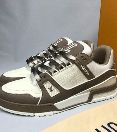 • [홍콩명품.LOUIS VUITTON] 루이비통 24SS 로고 모노그램 트레이너 스니커즈 운동화 (아이보리-브라운), SE3725, PMD, 명품스니커즈,운동화,구두,로퍼,하이탑,신발
