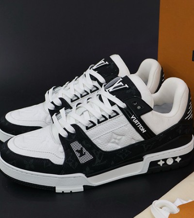 • [홍콩명품.LOUIS VUITTON] 루이비통 24SS 로고 모노그램 트레이너 스니커즈 운동화 (화이트-블랙), SE3731, PMD, 명품스니커즈,운동화,구두,로퍼,하이탑,신발