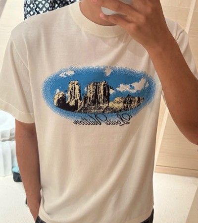 • [홍콩명품.LOUIS VUITTON] 루이비통 24SS 로고 그래픽 프린트 반팔 티셔츠 (아이보리), BM16034, KB, 홍콩명품의류,구매대행,온라인명품