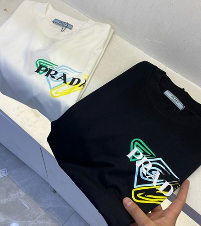 • [홍콩명품,PRADA] 프라다 24SS 로고 그래픽 프린트 반팔 티셔츠 (2컬러), BM15202, BR, 홍콩명품의류,구매대행,온라인명품