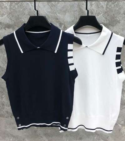 • [홍콩명품.THOME BROWNE] 톰브라운 24SS 로고 여성 4바 카라 니트 탑 셔츠 (2컬러), BM15254, TB1, 홍콩명품의류,구매대행,온라인명품