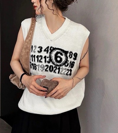 • [홍콩명품.Maison Margiela] 메종마르지엘라 24SS 로고 여성 슬리브리스 니트 탑 (2컬러), BM15275, TBG, 홍콩명품의류,구매대행,온라인명품