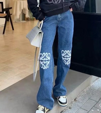 • [홍콩명품.LOEWE] 로에베 24SS 로고 자수 여성 오버핏 데님 팬츠 진 청바지, BM15309, TBG, 홍콩명품의류,구매대행,온라인명품