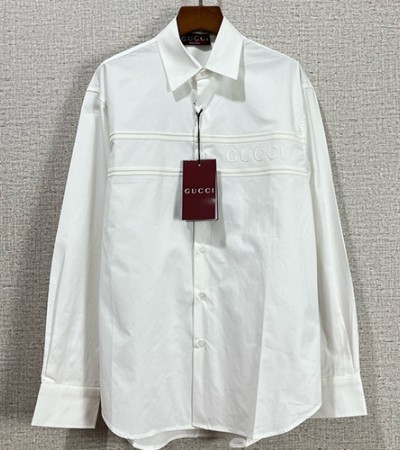 • [홍콩명품.Gucci] 구찌 24SS 로고 자수 포플린 남방 셔츠 (화이트), BM15402, L2, 홍콩명품의류,구매대행,온라인명품