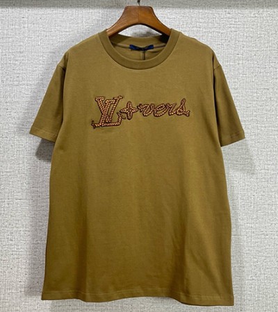 [홍콩명품.LOUIS VUITTON] 루이비통 24SS 로고 그래픽 자수 반팔 티셔츠 (브라운), BM15407, L2, 홍콩명품의류,구매대행,온라인명품 > 남자의류