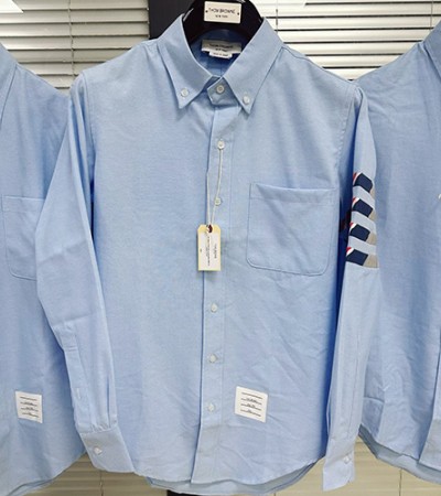 • [홍콩명품.THOME BROWNE] 톰브라운 24SS 로고 4바 남방 셔츠 (스카이블루), BM15424, RED, 홍콩명품의류,구매대행,온라인명품