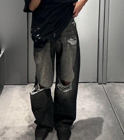 [홍콩명품.BALENCIAGA] 발렌시아가 24SS 로고 빈티지 오버핏 데님 팬츠 진 청바지 (그레이), BM15504, JL, 홍콩명품의류,구매대행,온라인명품 > 남자의류