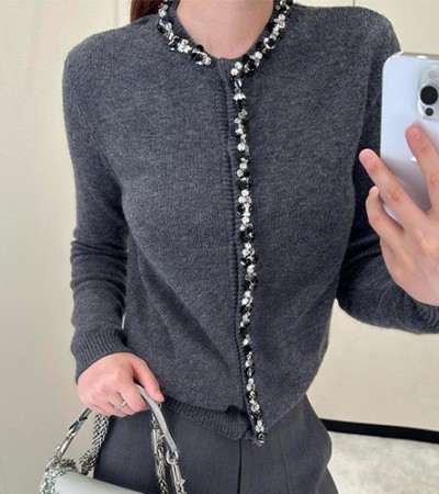[홍콩명품.Valentino] 발렌티노 24SS 로고 여성 라운드넥 니트 가디건 (그레이), BM15568, TBG, 홍콩명품의류,구매대행,온라인명품 요약정보 및 구매