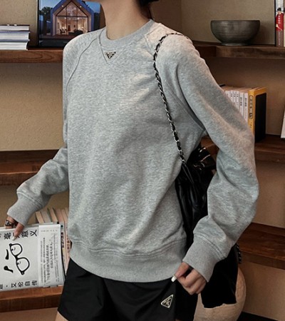 [홍콩명품,PRADA] 프라다 24SS 삼각로고 여성 맨투맨 티셔츠 (그레이), BM15572, TBG, 홍콩명품의류,구매대행,온라인명품 > 여성몰