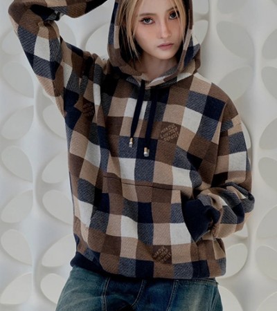 • [홍콩명품.LOUIS VUITTON] 루이비통 24SS 로고 다미에 여성 울 후드 티셔츠, BM15574, TBG, 홍콩명품의류,구매대행,온라인명품