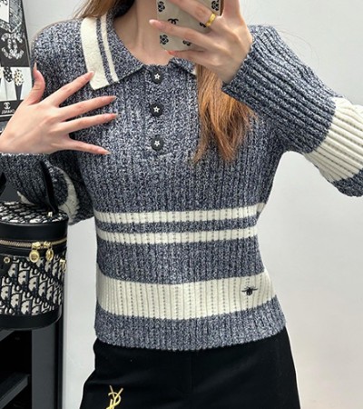 • [홍콩명품,Christian Dior] 디올 24SS 로고 여성 카라 니트 스웨터 (2컬러), BM15608, TBG, 홍콩명품의류,구매대행,온라인명품