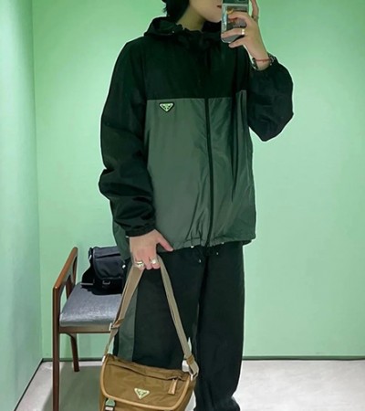 • [홍콩명품,PRADA] 프라다 24SS 삼각로고 후드 바람막이 자켓 + 팬츠 바지 상하의 세트 (블랙-그레이), BM15676, JU, 홍콩명품의류,구매대행,온라인명품