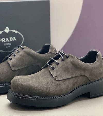 • [홍콩명품,PRADA] 프라다 24SS 로고 레더 가죽 구두 워커 (그레이), SE4032, PMD, 명품스니커즈,운동화,구두,로퍼,하이탑,신발