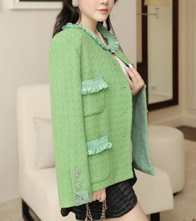 • [홍콩명품.CHANEL] 샤넬 24SS 로고 여성 라운드넥 트위드 자켓 (그린), BM15719, TBG, 홍콩명품의류,구매대행,온라인명품