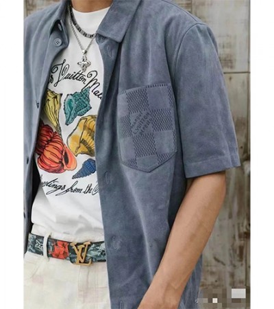 [홍콩명품.LOUIS VUITTON] 루이비통 24SS 로고 다미에 포켓 가죽 반팔 남방 셔츠 1AFQON (블루), BM15795, TOM, 홍콩명품의류,구매대행,온라인명품 > 남자의류
