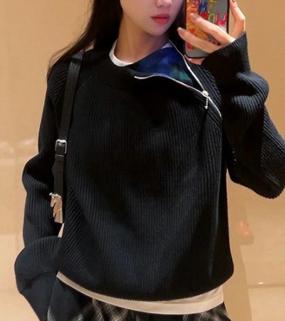 • [홍콩명품.Burberry] 버버리 24SS 로고 지퍼 장식 니트 스웨터 (블랙), BM15859, JS, 홍콩명품의류,구매대행,온라인명품