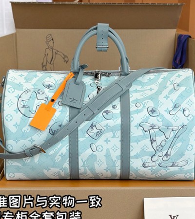 • [홍콩명품.LOUIS VUITTON] 루이비통 24SS 로고 모노그램 키플 반들리에 50 여행가방 M22570 (스카이블루), BGM3716, BDA, 명품지갑,무브타임쇼핑몰,홍콩명품,사이트,명품쇼핑몰