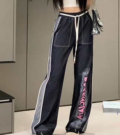 • [홍콩명품.BALENCIAGA] 발렌시아가 24SS 로고 그래픽 여성 데님 팬츠 진 청바지, BM15902, W3, 홍콩명품의류,구매대행,온라인명품
