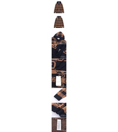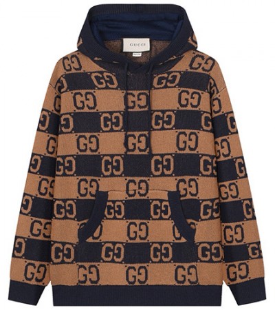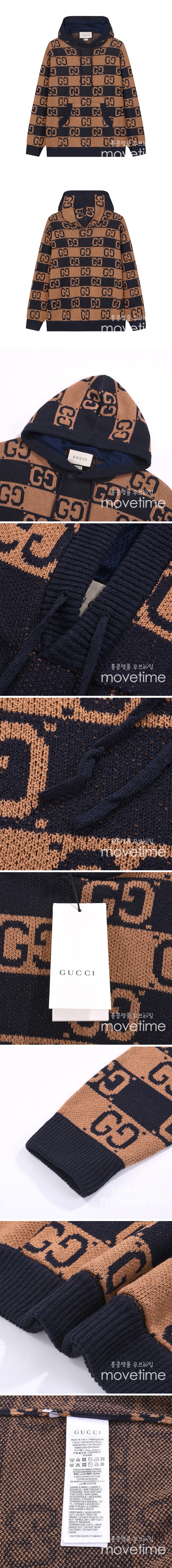 • [홍콩명품.Gucci] 구찌 24SS 로고 패턴 후드 니트 스웨터 (브라운), BM15940, JU, 홍콩명품의류,구매대행,온라인명품