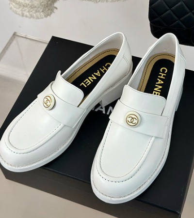 • [홍콩명품.CHANEL] 샤넬 24SS 로고 여성 레더 가죽 굽 구두 로퍼 (화이트), SE4093, ALW, 명품스니커즈,운동화,구두,로퍼,하이탑,신발