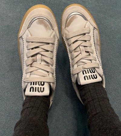 • [홍콩명품,MIU MIU] 미우미우 24SS 로고 여성 레더 가죽 스니커즈 운동화 (화이트), SE4102, ALW, 명품스니커즈,운동화,구두,로퍼,하이탑,신발