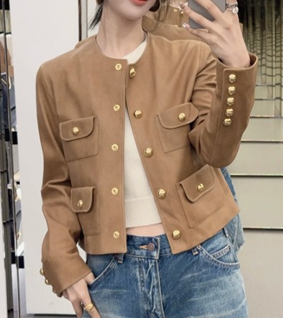 • [홍콩명품.CELINE] 셀린느 24SS 로고 여성 김소연 쇼트 레더 가죽 자켓 (브라운), BM15964, TBG, 홍콩명품의류,구매대행,온라인명품