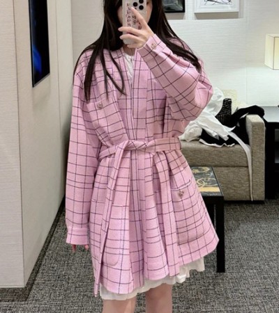 • [홍콩명품.CHANEL] 샤넬 24SS 로고 체크 패턴 여성 바스로브 코트 자켓 (핑크), BM15997, PG, 홍콩명품의류,구매대행,온라인명품