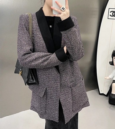 • [홍콩명품.CHANEL] 샤넬 24SS 로고 여성 울 코트 자켓 (다크그레이), BM16008, PG, 홍콩명품의류,구매대행,온라인명품