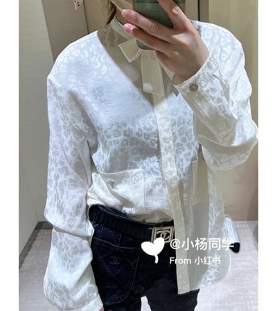• [홍콩명품.CHANEL] 샤넬 24SS 로고 패턴 여성 실크 블라우스 셔츠 (화이트), BM16009, PG, 홍콩명품의류,구매대행,온라인명품