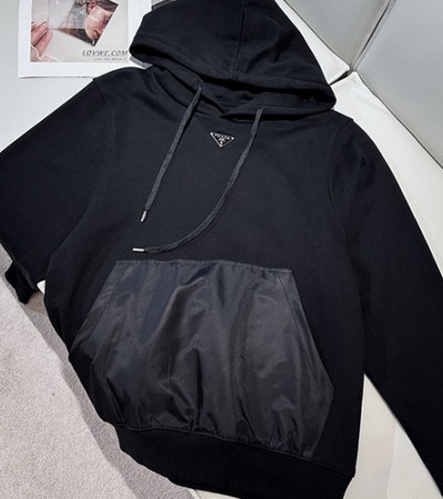 • [홍콩명품,PRADA] 프라다 24SS 삼각로고 나일론 포켓 후드 티셔츠 (블랙), BM16041, KB, 홍콩명품의류,구매대행,온라인명품