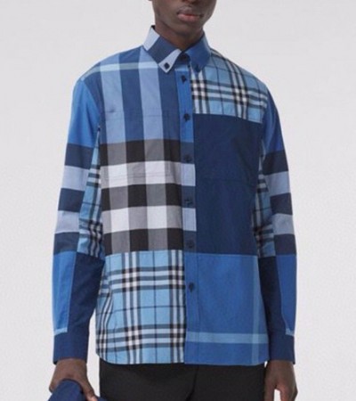 [홍콩명품.Burberry] 버버리 24SS 로고 체크 패턴 남방 셔츠 (블루), BM16080, BR, 홍콩명품의류,구매대행,온라인명품 > 남자의류