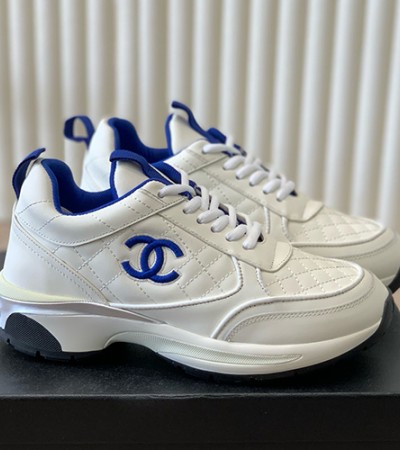 • [홍콩명품.CHANEL] 샤넬 24SS 로고 여성 퀄팅 레더 가죽 스니커즈 운동화 (화이트-블루), SE4113, ALW, 명품스니커즈,운동화,구두,로퍼,하이탑,신발