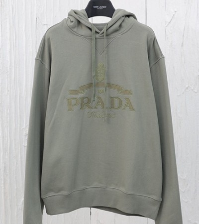 • [홍콩명품,PRADA] 프라다 24SS 로고 자수 후드 티셔츠 (카키), BM16196, JU, 홍콩명품의류,구매대행,온라인명품
