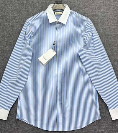[홍콩명품.Gucci] 구찌 24SS 로고 자수 스트라이프 남방 셔츠 (스카이블루), BM16220, JQ, 홍콩명품의류,구매대행,온라인명품 > 남자의류