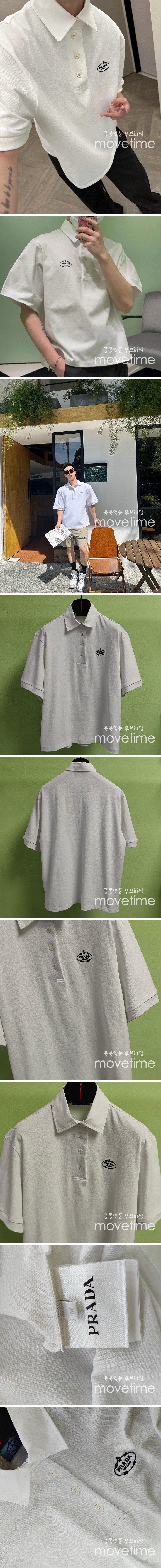 [홍콩명품,PRADA] 프라다 24SS 로고 자수 카라 폴로 반팔 티셔츠 (화이트), BM16239, JL, 홍콩명품의류,구매대행,온라인명품 > 남자의류
