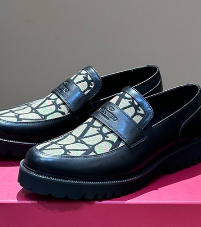 • [홍콩명품.Valentino] 발렌티노 24SS 로고 모노그램 레더 가죽 굽 구두 로퍼 (블랙-베이지), SE4176, S2, 명품스니커즈,운동화,구두,로퍼,하이탑,신발