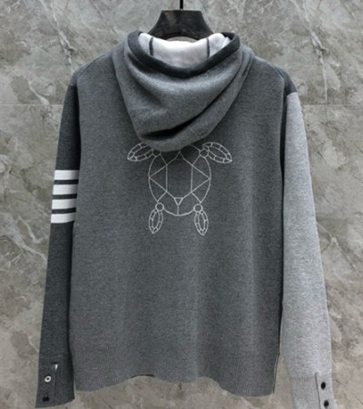 • [홍콩명품.THOME BROWNE] 톰브라운 24SS 로고 4바 후드 니트 가디건 자켓 (그레이), BM16357, TB1, 홍콩명품의류,구매대행,온라인명품