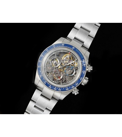 Movement | Custom made skeleton asian Super Clone4130 movement 28800vph, 1:1 replicated from the genuine movement, fully functional. Blue spring same as genuiine. |