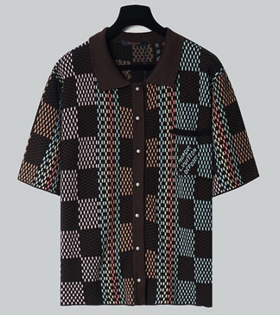 • [홍콩명품.LOUIS VUITTON] 루이비통 24SS 로고 다미에 폴로 버튼 반팔 티셔츠 + 쇼츠 반바지 상하의 세트 (브라운), BM16388, JU, 홍콩명품의류,구매대행,온라인명품