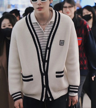 [홍콩명품,MIU MIU] 미우미우 24SS 로고 V넥 니트 가디건 (아비보리), BM16412, JU, 홍콩명품의류,구매대행,온라인명품 > 남자의류