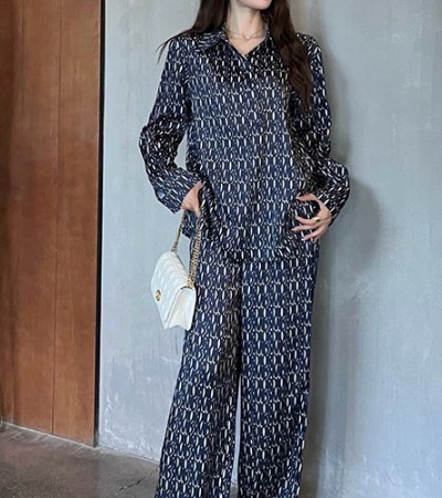 • [홍콩명품,Christian Dior] 디올 24SS 로고 패턴 여성 블라우스 셔츠 + 팬츠 바지 상하의 세트 (네이비), BM16447, TBG, 홍콩명품의류,구매대행,온라인명품