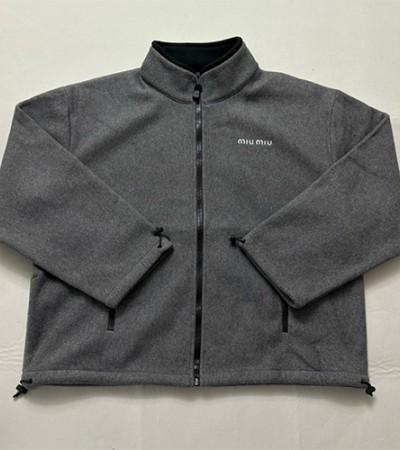 [홍콩명품,MIU MIU] 미우미우 24SS 로고 자수 터틀넥 울 지퍼 자켓 (그레이), BM16515, JU, 홍콩명품의류,구매대행,온라인명품 > 남자의류